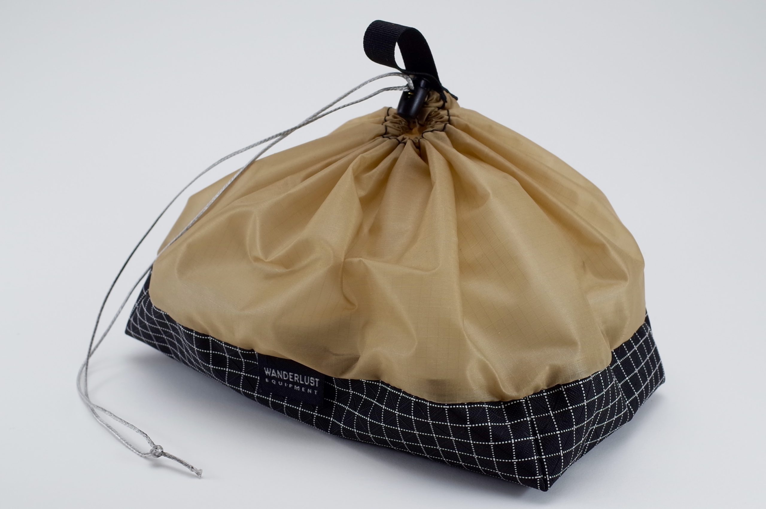 ドローコードの開け閉めのときに指を引っ掛けて、テントサイトでの持ち運びに、または自宅での収納にも壁掛けにできたりと便利です。