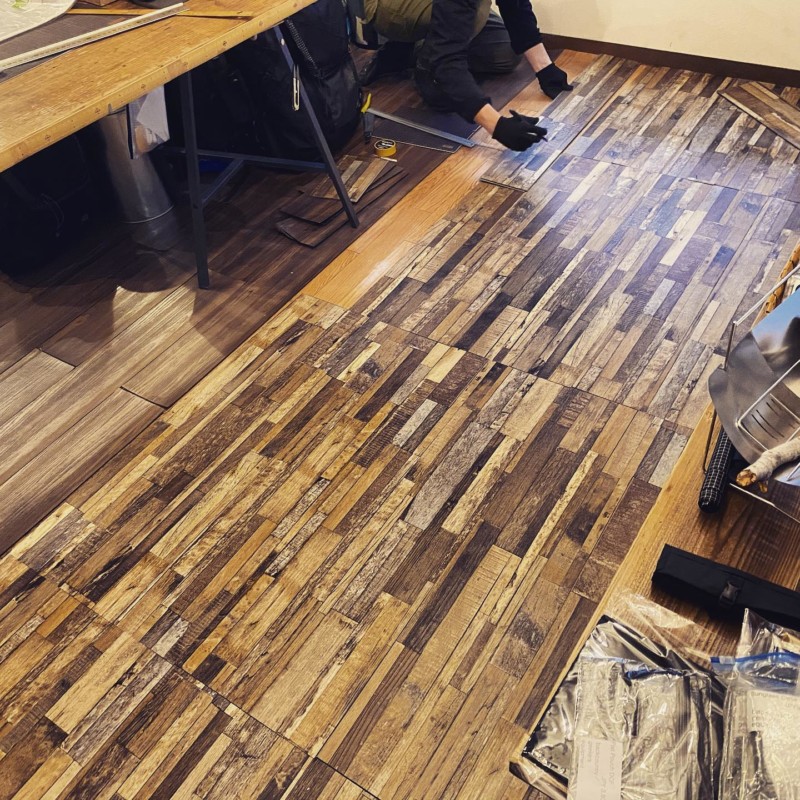 MT.FABs 床張り替え作業中。リニューアル楽しみ!今だからこそできることをコツコツやっていきましょう。