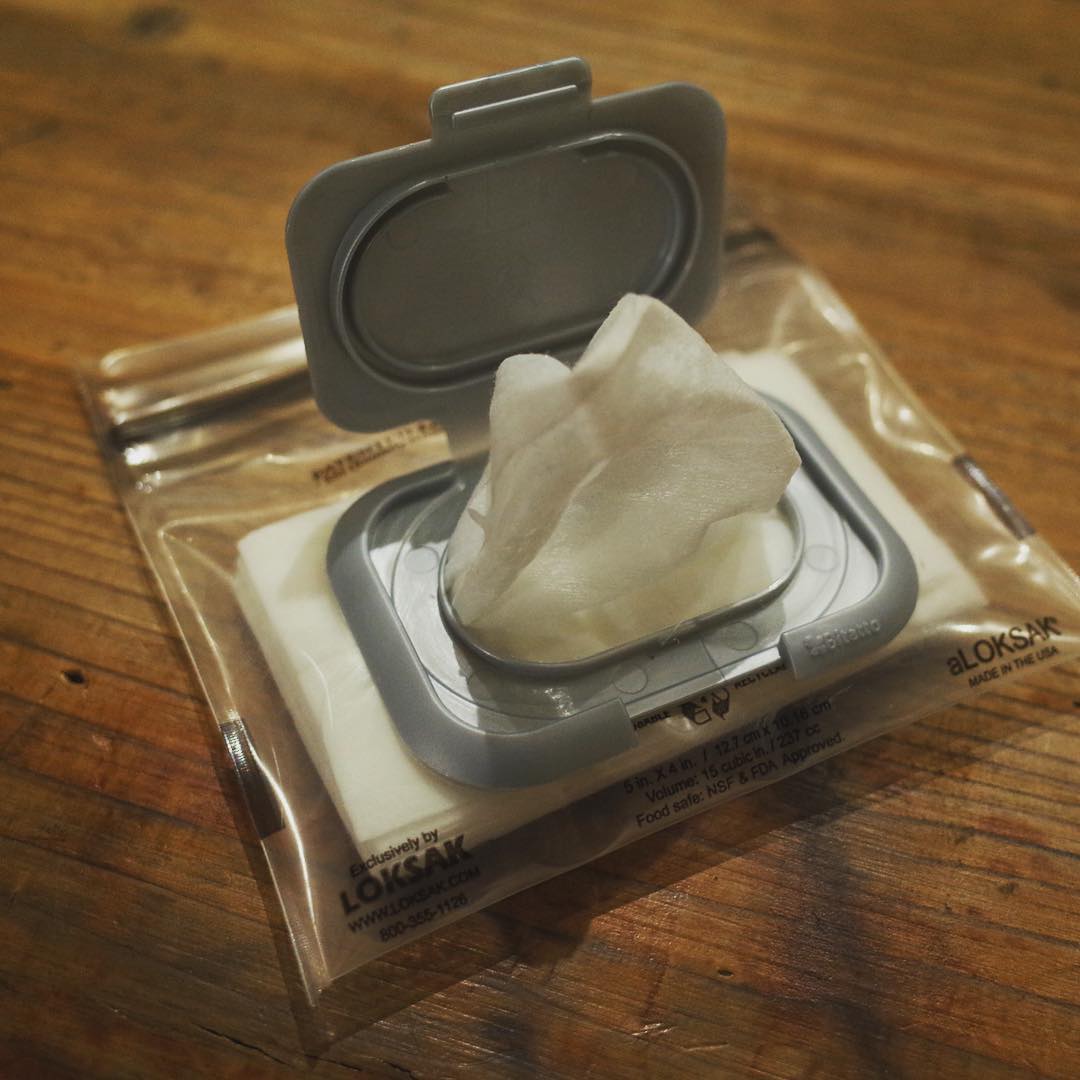 昨日ハイカーズデポでLOKSAKを買ったのはこれを作るためです。詰め替え可能ウェットティッシュケース!