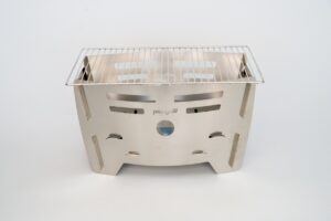 折りたたんで持ち運びできる軽量焚き火台ピコグリルの最新モデルです。670gと軽量コンパクト。組み立ての手間がなくワンアクションで展開・収納できる革新的なデザインが特徴です。